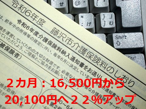 介護保険料は年間21,600円の増加2カ月で16,500円から20,100円へと22%の値上がり、この先3年かこの金額だそう。まだまだ上がり続けるのだろうが。 |