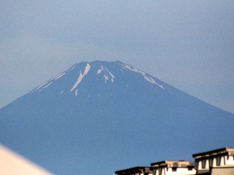 今朝の富士山、雪はほぼ消えた昨夕も黒い雲が掛かるも山頂部が見えていた富士山、今日は綺麗に姿が見える、もう雪が消えるのは時間の問題か。 |