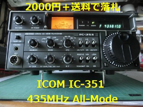 導入検討機種:ICOM IC-351(430Mhz All-Band)と専用マイク本当にアマチュア無線を再開するかどうかはまだ未定だが、採用候補の中古機種を検討。435MHzしかやらないならこれで十分。 でも古い機種(販売後30年?)なので何時壊れるかは心配ありだが。 |