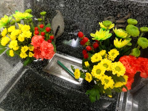 墓参りに今日は11時20分からの映画を見るためいつもより30分早く出発。暑くなったので花はほぼ全滅状態だった。 |