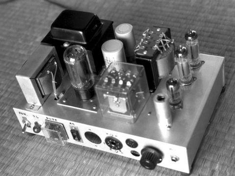 変調用アンプ+電源変調方式はプレート変調、プレートに掛かる電圧を音声信号で変調するのでパワーが必要だが音質は良い。」 構成は6BQ5-PPによるアンプ(オーディオ用ではないが、ほぼ同じ回路)。電源の整流回路には5AR4-GTを使っている。 使っている抵抗器は今はもう使わないカーボン抵抗器。 |