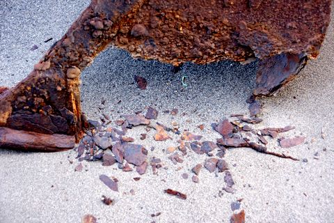 海岸の風景:朽ちたブルドーザ今日は遅めの散歩に、日も傾き風もあって歩きやすい環境、取り残されて朽ちているブルドーザ、漁業用に使われたものが 用済になり放置、錆て朽ちてゆくが鉄材が分厚くてなかなか崩れ落ちない。 |
