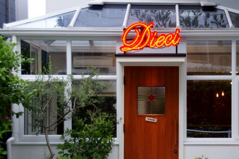 近所のイタリアン「DIECI」帰路、いつものイタリアン、6時半過ぎでもう開店しているが未だ誰もいない。入口に置かれたピアノが目立つ。 |
