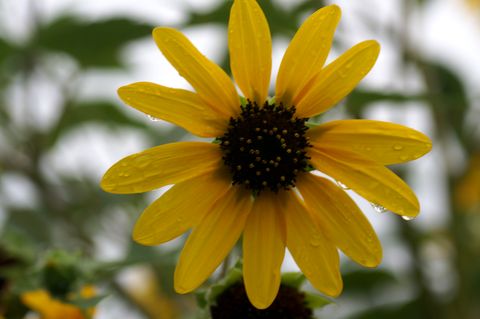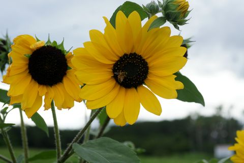 雨の合間の公園ミツバチが忙しそうにヒマワリの花粉を集めて飛び回っていた。 |