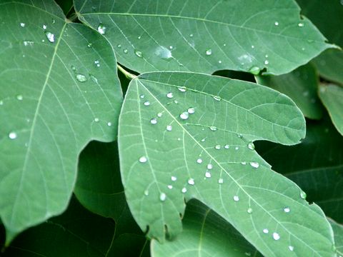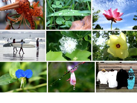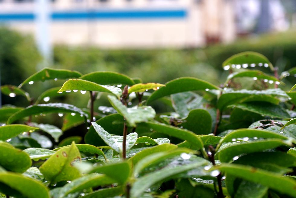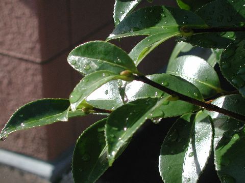 午後は夕立ち、はっぱにも水滴さらに夜には北から下ってきた雨雲で強い雨、このところ夕方の雨が普通に。 |