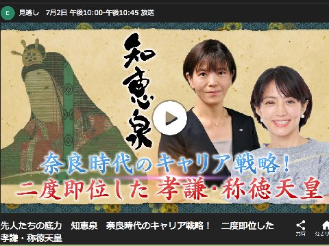 奈良時代、2度即位した女性天皇がいた女性天皇は結構いるのだが殆どは権力維持の中継ぎ(短期)だったよう。例外が一人、最初は母・光明子の権力維持の便法だった。 2回目は実力で皇太子から天皇へ、改革も進め女性官僚も多数登用したとある。家庭教師の吉備真備に帝王学を学び、追い落とそうと 画策した藤原仲麻呂を排除してその地位を確立した。天皇に必要なのは「帝王学」を修めた優れた人材であること、ナマズの皇嗣やその 息子など全く歯牙にも掛からずを痛感。 |