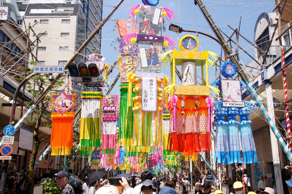 平塚七夕がスタート今日から7日まで3日間の七夕まつりがスタート、今日は平日で幼稚園や介護施設の見学者が目立つ。 |