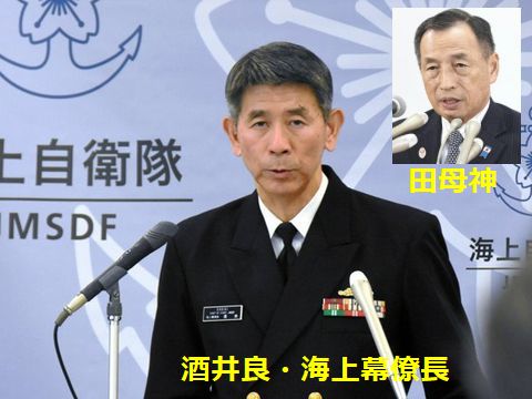 機密情報の違法運用で辞任、人材がいない自衛隊前の航空幕僚長・田母神も制服姿は凛々しいが最近の言動を見る限り真面な人材とは到底思えず、優秀な人材が欠落の自衛隊トップ。 海上自衛隊も機密情報のズサン運用に潜水艦部隊の川重へのタカリも発覚と低レベルな醜態が続くなかトップが辞任することに。 |