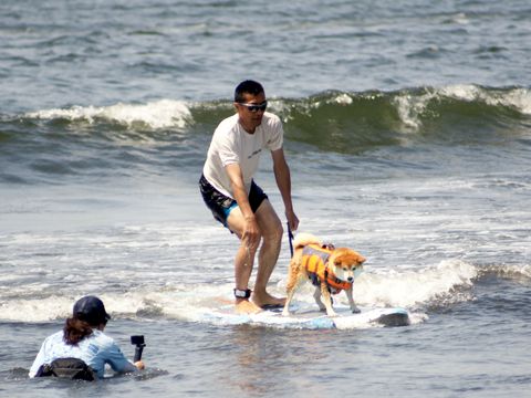 DOG種目では犬が主役犬のみ、犬と一緒など3種目あり、水を怖がらない犬が落ちても頑張る。 |
