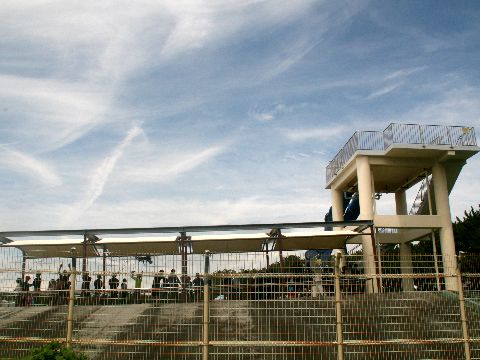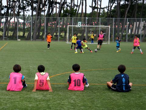 海開きまで2日海の家は準備完了、トイレも整備、ライトも付いた。公園のグラウンドでは少年たちがサッカー。 |