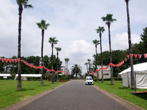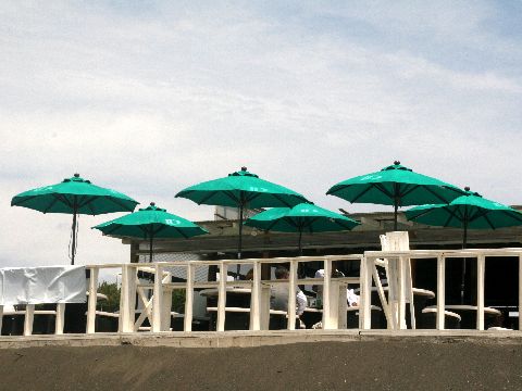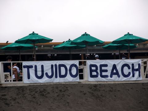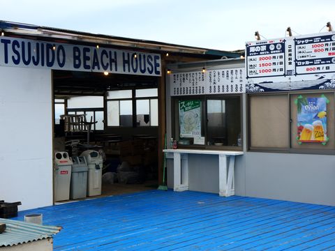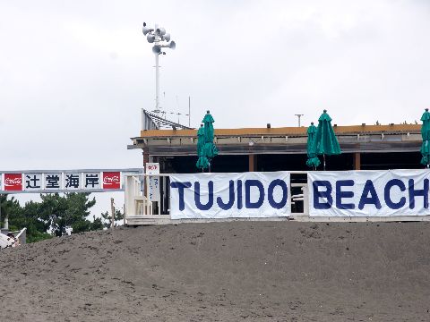 海開きも、8月までの夏シーズンちょうど安全祈願の神主さんが片づけて帰るところに出くわした。 |