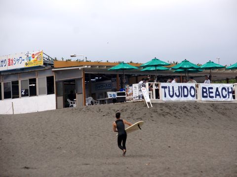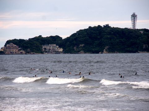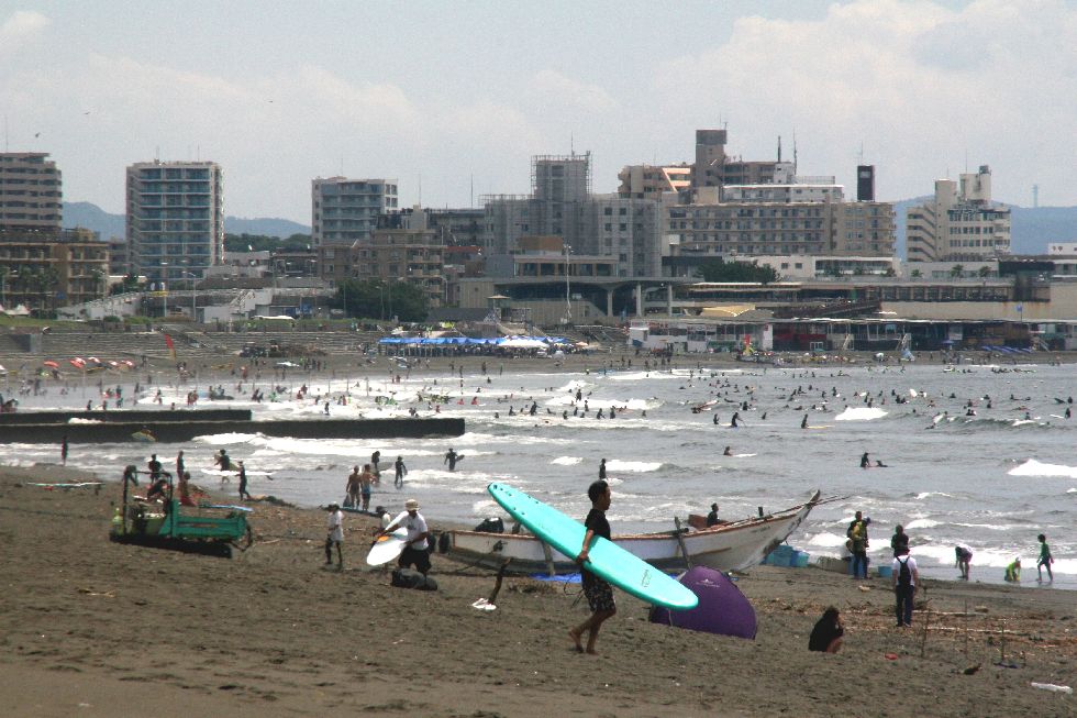 今日の辻堂海水浴場サーファーは沢山いるが海水浴をしている人はほぼなし、平日なので当然か。 |