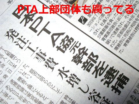 最上部団体まで腐っているPTA「任意加入」なのに加入しない人に嫌がらせするなど何かと問題だらけのPTA、集金した金で運営の上部団体の 幹部が横領とは、やはり与えられたPTAではうまく機能できない日本人の体質?。 |