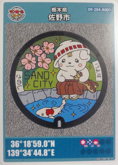 昨日集めたマンホールカードこの2枚は足利市のもの、駅近くの観光施設で配布、冷房も効いていて休憩に最適。 |