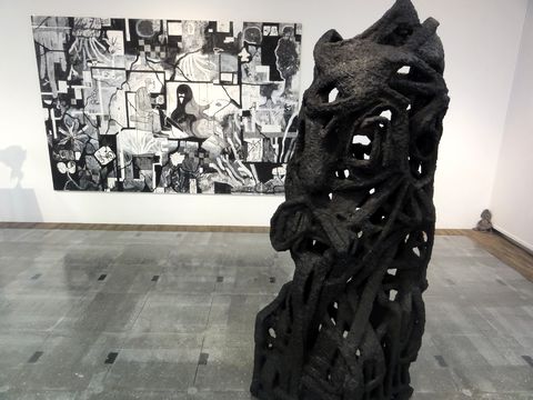 アートスペースも展示あり3人のアーティストの展示、良く解らん! |
