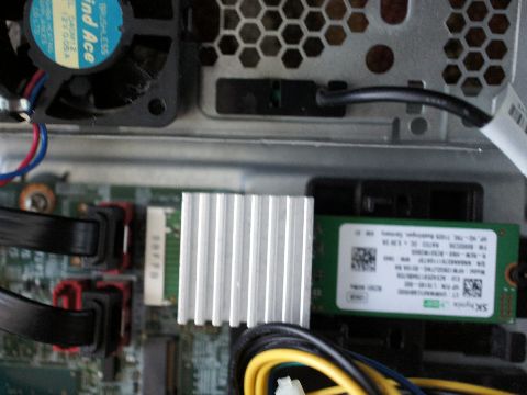 部品整理で小さいヒートシンク発見:NVMeメモリに温度上昇が酷い(小型で高密度なので当然だが)NVMeメモリの放熱用に利用する。 |