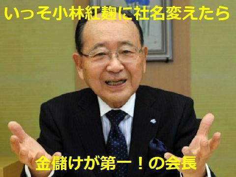 今更のトップ辞任、製薬の名前はサギ?製薬など殆どやらず儲かるサプリなどで「小林製薬」という名前の信用度を悪用した商売をしていたとしか思えない。 もう製薬などやってないなら名前も変えるべき、「小林紅麹」など忘れない様に。 |