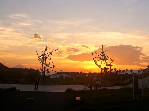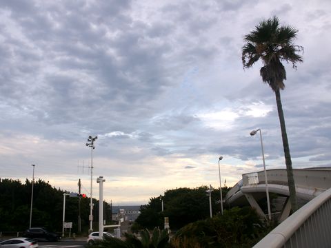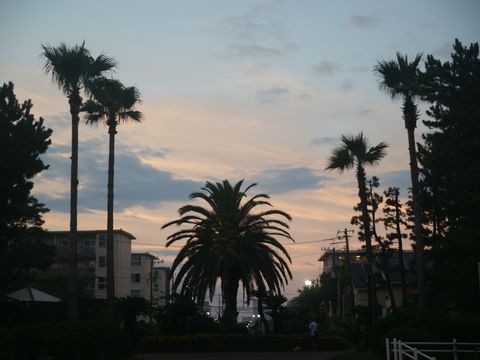 夕方の散歩、リュウゼツランはほぼ満開今日は富士山は雲に隠れてほぼ見えず、休日なので海岸には薄暗くなっても人が多い。 |