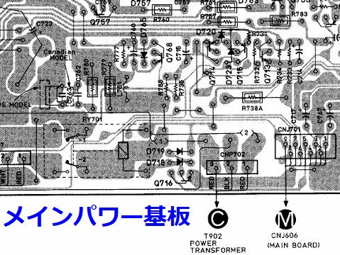 「故障」リレーは代替できるかサブのサラウンド出力にも2個のリレーが使われている、同じものかは要確認、どうせサラウンドは要らないので流用も可能。 |