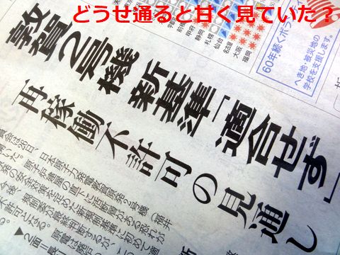 教員人事(校長)は胡散臭い金銭の授受を伴う推薦名簿の提出など不透明さが満点の不祥事、長時間労働で教員志望者が激減するなか、校長への人事でこんなインチキ?がまかり通る職業に 志望者がさらに減ることがないといいが。 |