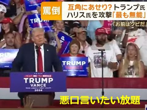 あせる?トランプは悪口ざんまい民主党・ハリス候補の健闘で焦るトランプ、悪口言いたい放題。 |