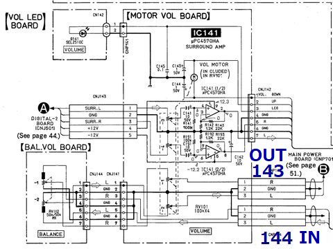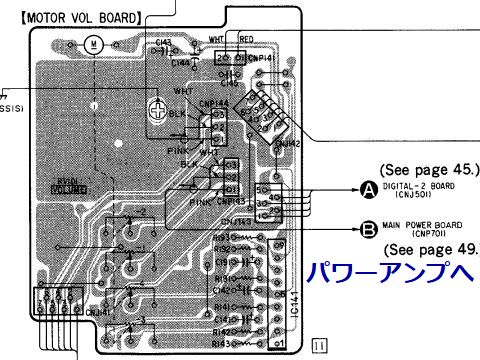 VRの前から信号を入れればチェックできそうメインアンプはアナログ式なので直前にある音量調整のVR(モータ操作あり)の直前に信号を入れれば メインアンプ部のチェックはできそう。 |
