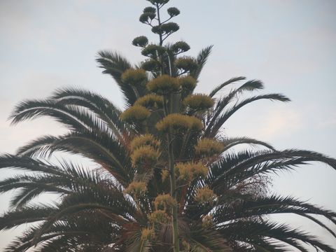 リュウゼツランはもう最後上まで満開になったが最初に咲いた下半分は枯れて無くなってしまった。 |