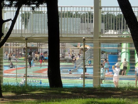 プール開き子供たちお待ちかねの公園プールがオープン、人気のウォータースライダにはスタート待ちの列ができていた。 |