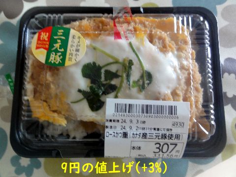 弁当も9月から3%値上げに時々買うOKのお弁当、3%値上げになっていた、何でも値上がりする秋に。 |