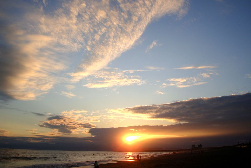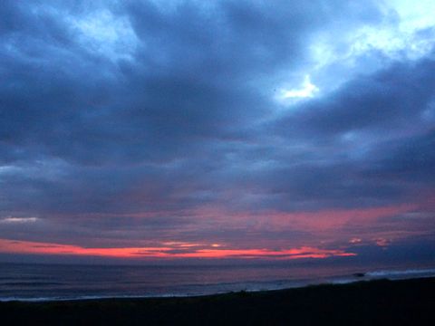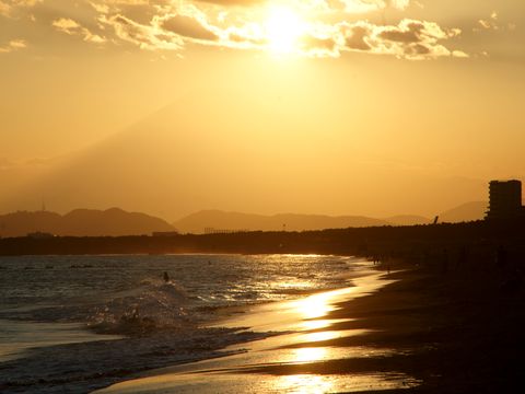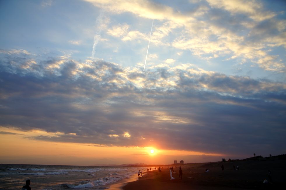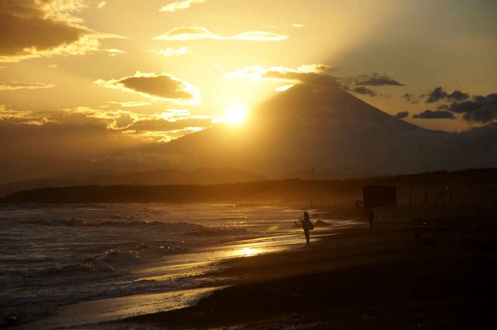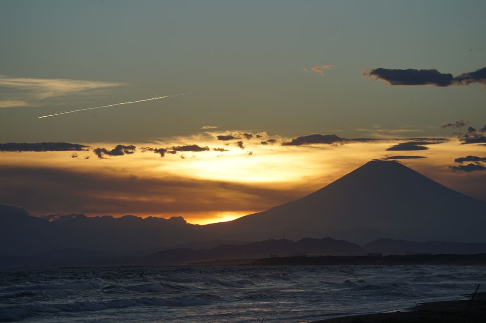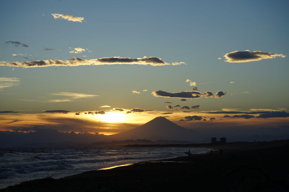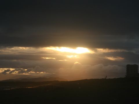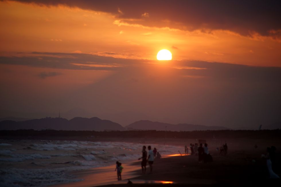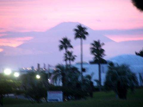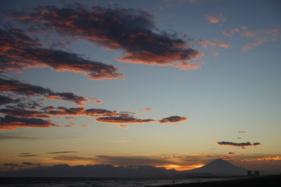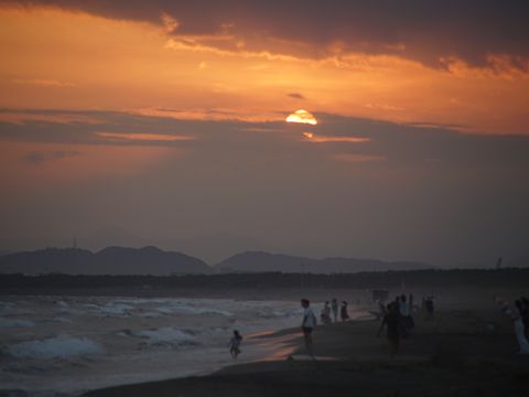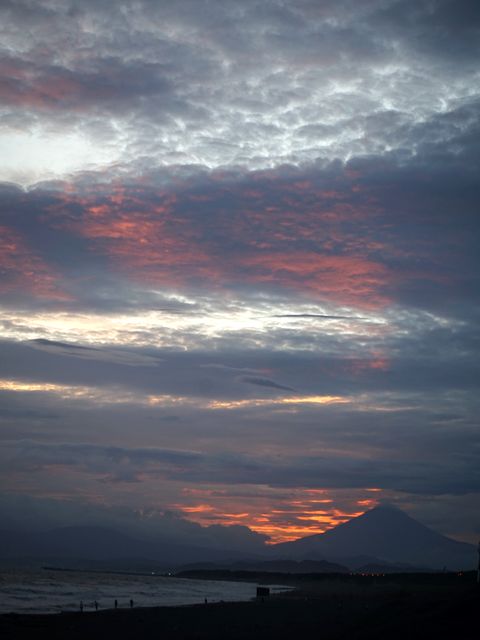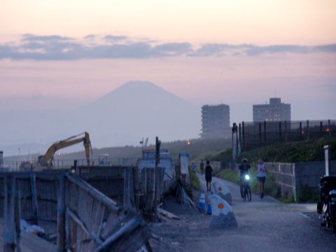 雲が多く夕方は見えず海岸ではちびっこサーフィン教室、台風で中止となった予定の振り替えなのか頻繁にやっている感じ。 |