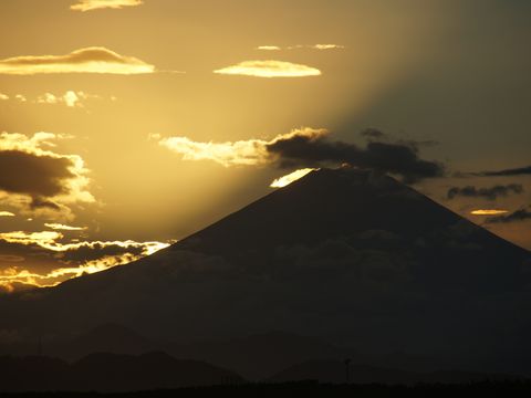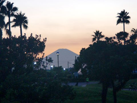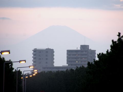 雲が多くて日没は太陽見えず一時は雨も降るような予報だったが結局は降らなかった、日没の富士山は全く見えず。 |
