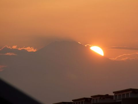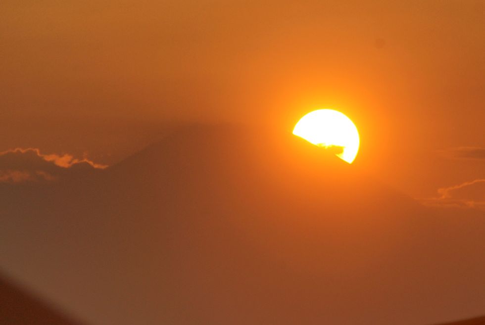 ダイヤモンド富士はまだ?今日は富士山の山形が良く見えたが、まだ北側斜面に沈んでいった。使用カメラ:SONY α900+MINOLTA 75-300o Zoom(旧・茶筒) |