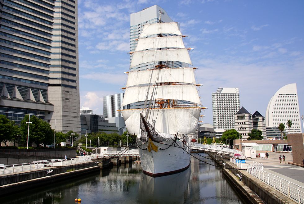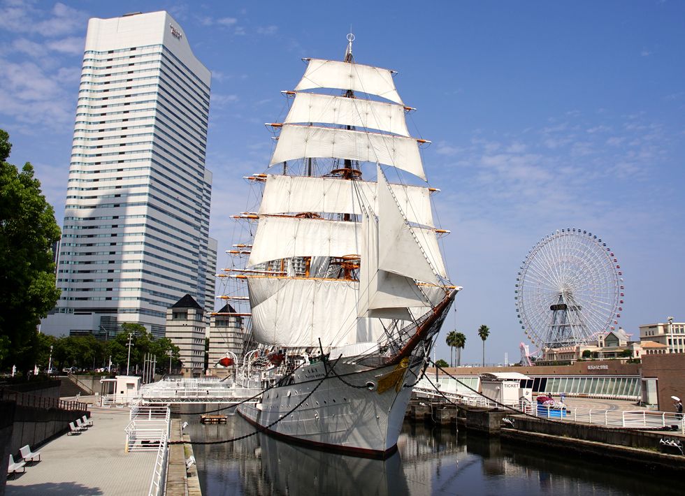日本丸・総帆展帆桜木町駅からみなとみらいホールへ向かうと右手の日本丸が総帆展帆になっているのを発見、寄り道して撮影。 |