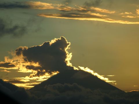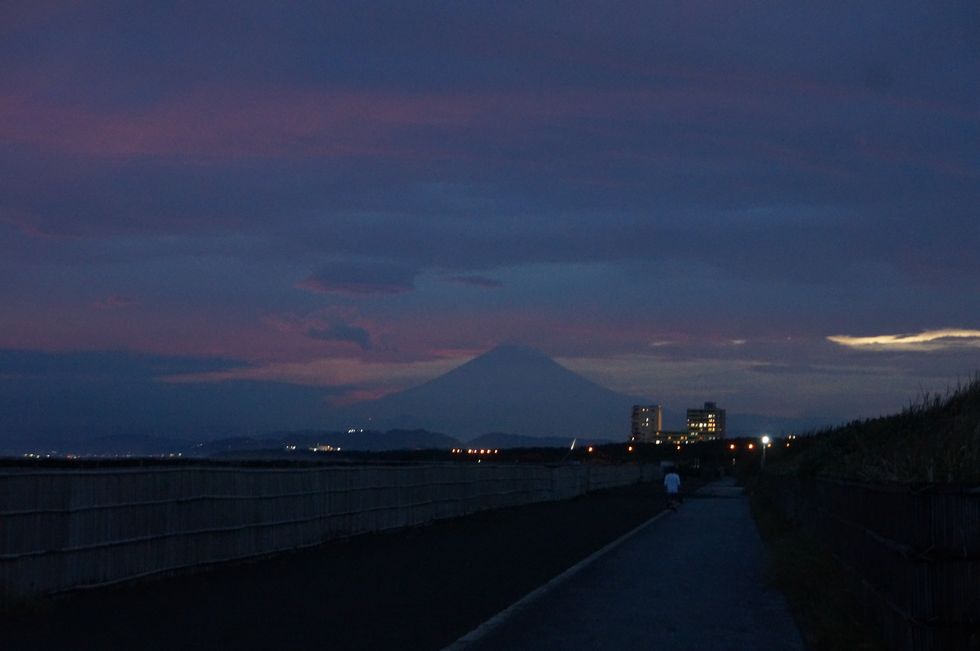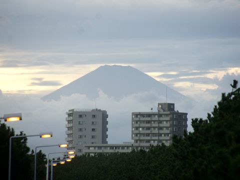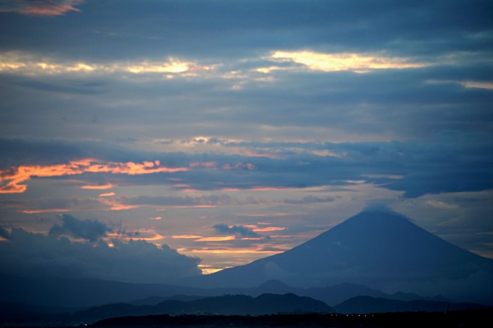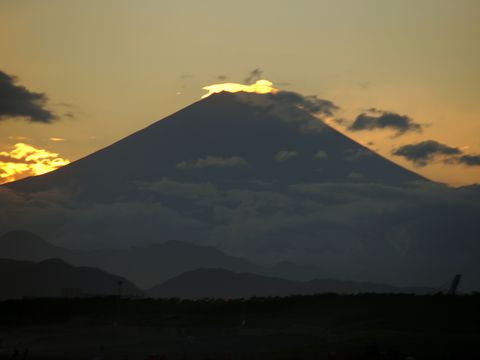 富士山は厚い雲の中、日没後山頂だけ見えた今日のお散歩カメラ:SONY W300、CANON EOS30D7+18-200mm TAMRON ZOOM |