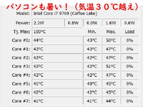 猛暑でPCも暑い?最近のPCはゲーム用などを除き省エネCPU搭載なのであまり熱くはならない。 |