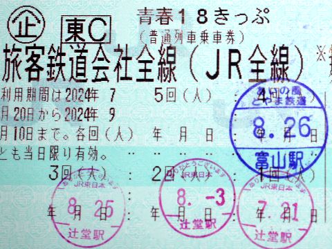 夏の青春18きっぷ一枚目は4回利用しヤフオクで売却、2回分をヤフオクで落札し電通大ミュージアム訪問と横川往復(本来は軽井沢>碓氷峠) で利用して今シーズンは終了、次は秋の乗り放題切符(3日連続利用)。 |