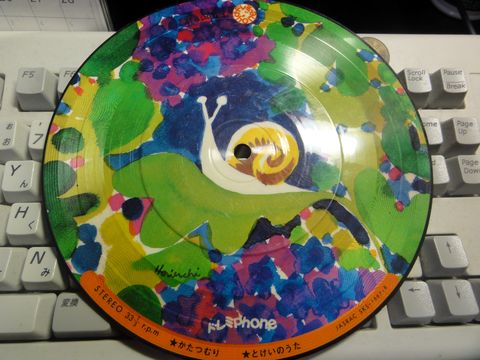 16枚組LPに入っていた余計なLPクリーニングのため全枚数をチェックしたら、こんなものが混じって出てきた。一枚は沢田研二のLPだが傷だらけで再生不能、 もう一枚は小さめのピクチャLPで童謡4曲入り。 |