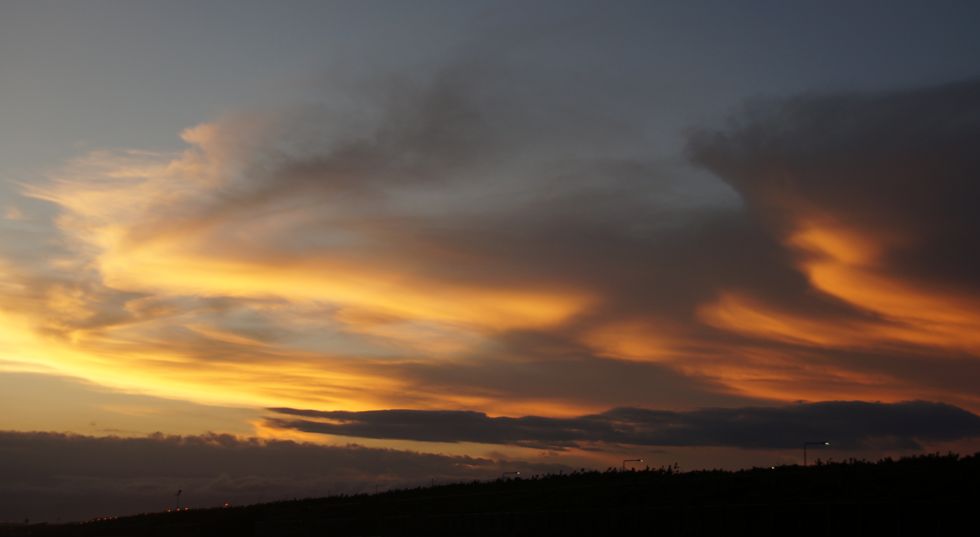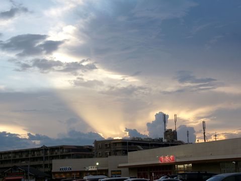 不思議な夕空雷の音が聞こえる中、恒例の夕方の散歩に。 |