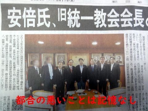アベの悪事が露呈、統一教会のリーク?知らぬ存ぜぬで誤魔化してきた自民党と統一教会の親密な仲、遂に写真がリークされて露呈、関係者は「自分だが記憶にない」 「確認できない(何が?)」などと苦しい言い訳に走っている。 |