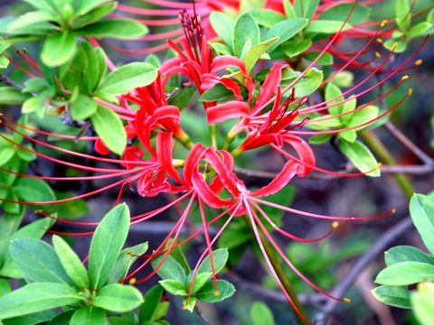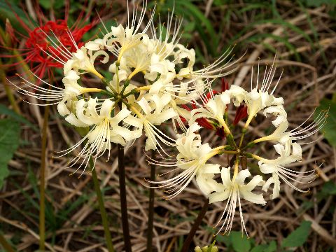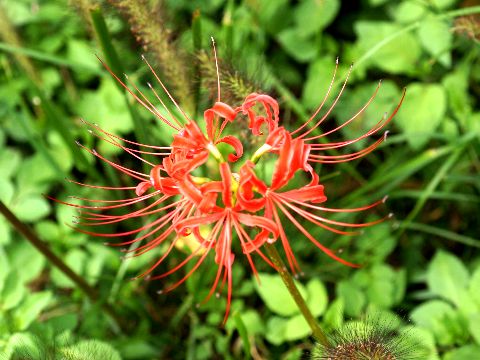 公園には彼岸花が綺麗何故か公園にぽつんと彼岸花が咲いている。 |