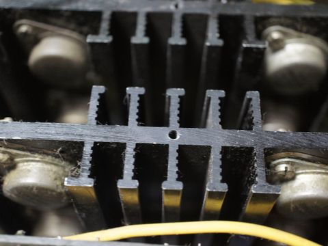 昔作ったアンプのメンテ(その2)ドライブ基板の初段トランジスタ各3本がマイグレーションで脚が真っ黒で短絡状態になっていると思われる、固めのブラシで 擦ったあとドライバの先端でリード部の錆を削った、効果はまだ不明。 |