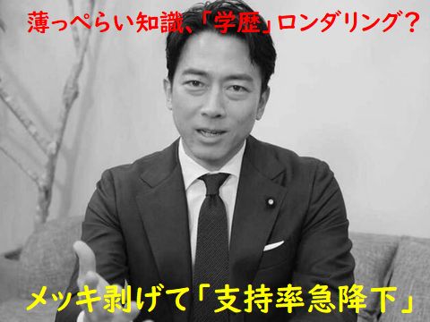 薄いメッキが剥げ剥げの小泉信次郎言う事が薄っぺらな誰かの思い付きのような内容ばかり、深く追及されると発言内容をころころ変えて遂には撤回という 醜態を演じて呆れられる、あの悪評だらけの森のお粗末が支援すると発言、ますます支持者は減るばかり。。 |