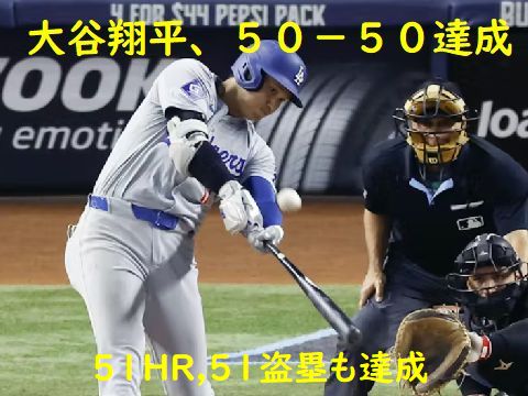 大谷翔平、50−50達成!現地19日夜の試合で遂に達成した大谷さん!と思ったら、もう51−51になっていた。 |