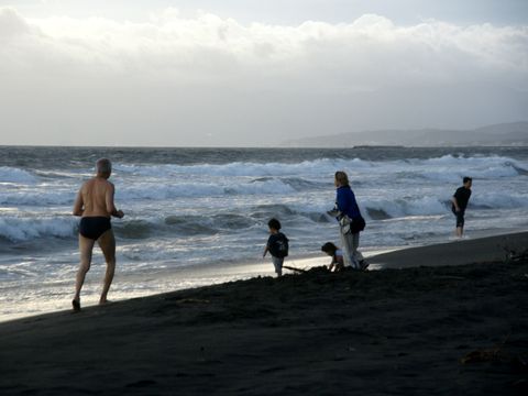 休日で人は多いが下の外人さん、いつも夫婦で海岸にいて波打ち際を歩いている。 |