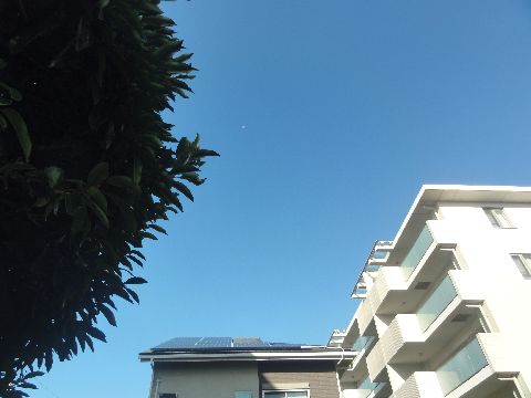 昨夜の月ほぼ満月に近い月らしいが薄雲があるのか霞んでいるような。 |