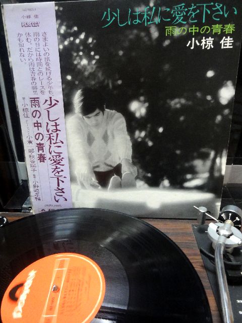 昨日買ってきた」LP7枚小椋佳「遠ざかる風景」はNHKホールでの初コンサートのライブ盤、他にも小椋佳は数枚あったので誰かの コレクションが売られたのだろう。特典のピクチャー版はA面のみ4曲収録。 |