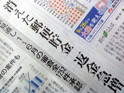 勝手に消える郵便貯金、やっと改善?十分な告知もせず「消えた郵貯」は国庫へ勝手に繰り入れられたもの。返すのが当然なのに返すことを渋ってきた「ゆうちょ」と 言うか国の対応が酷い。 |