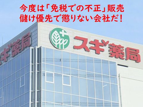 またインチキがばれたスギ薬局コロナワクチンでインチキしようとしてばれ評判がた落ちになったスギ薬品、今は息子をトップに据えているようだが 相変わらずの儲け一辺倒?で不正な免税販売で脱税騒ぎ。 |