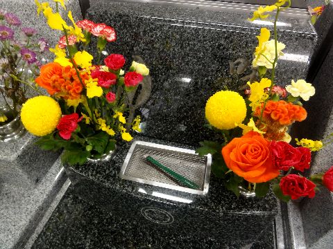 墓参りに、やっと100円の花ありいつもより1時間遅くイオンへ行くと100円の花が丁度品出しのタイミング、やはり遅くしないと駄目?墓参りのあと 雨が降らない |