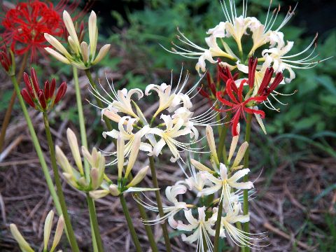 やっと秋の花も見られるように彼岸花がひっそり団地の中で咲いていた。 |